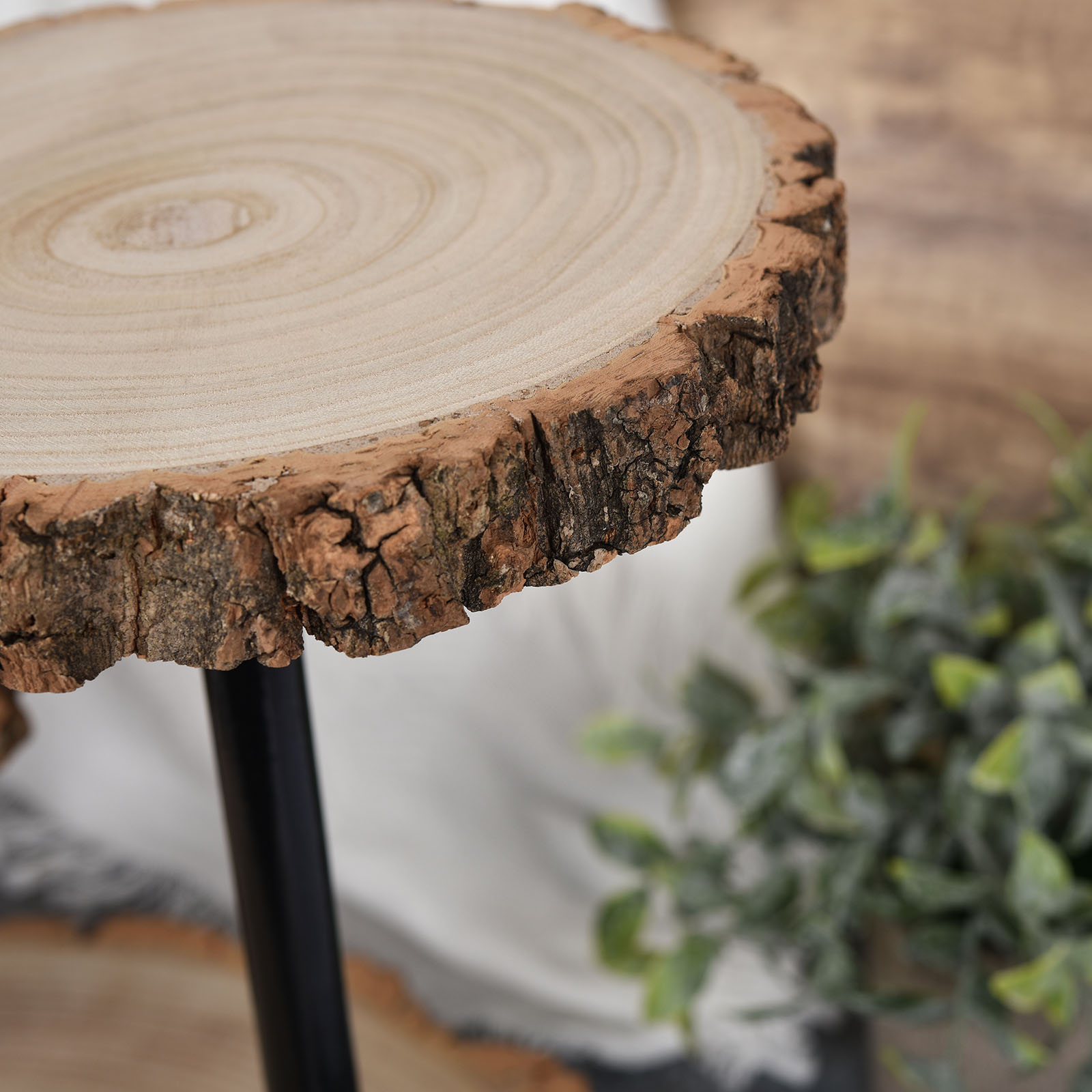 Celebrate your day with a dessert stand that is both decorative and functional! Slices of natural wood and high quality metal come together in this rustic dessert stand. Create a woodsy charm for your next party by placing it as a centerpiece with an elegant candlescape, floral arrangements and more. Place it on your dinner tables with your drinks, appetizers, cakes, desserts or any delicious food you can think of. The possibilities are endless! This wooden dessert display stand is great for weddings, rustic themed parties, events or your home. It is also a perfect gift for family and friends.