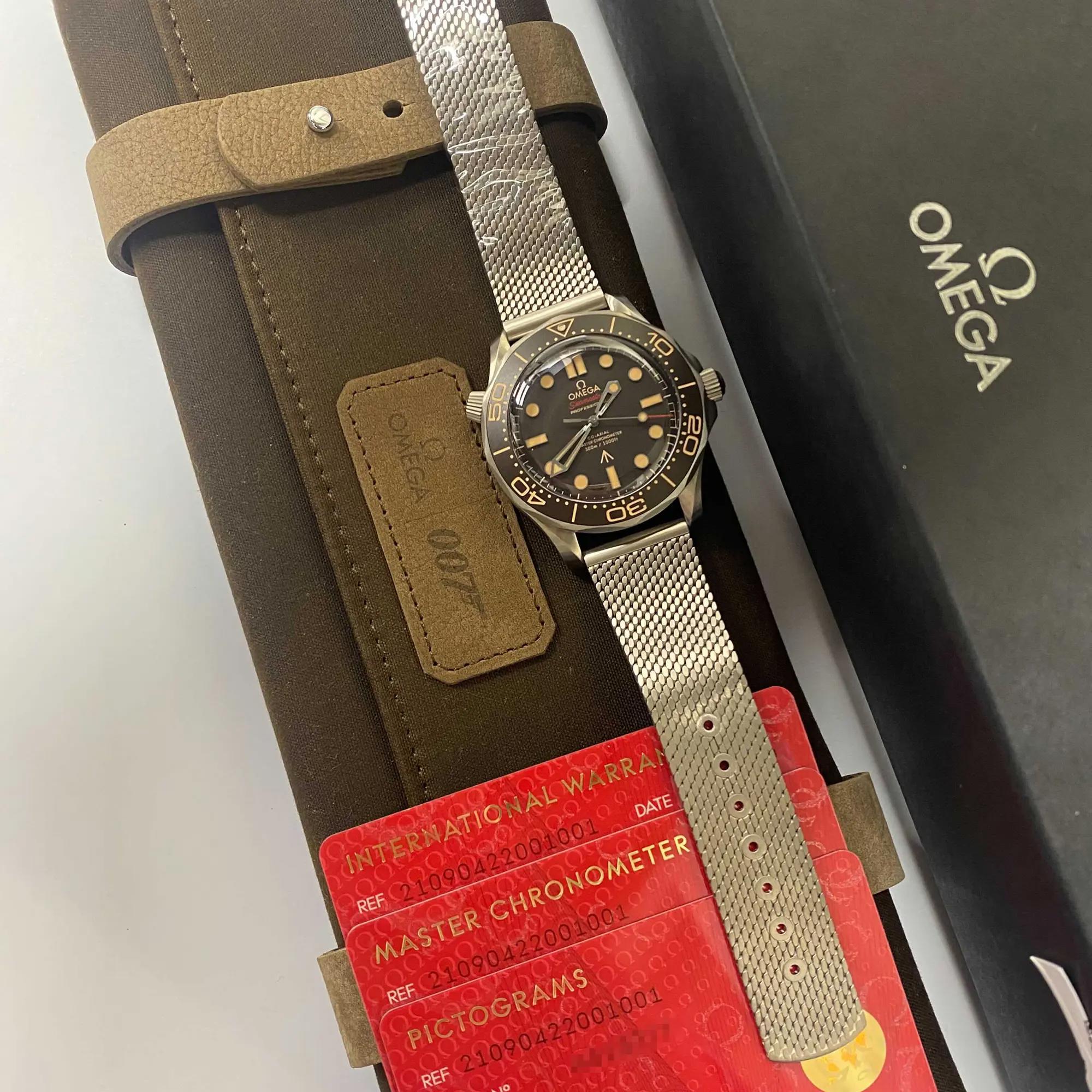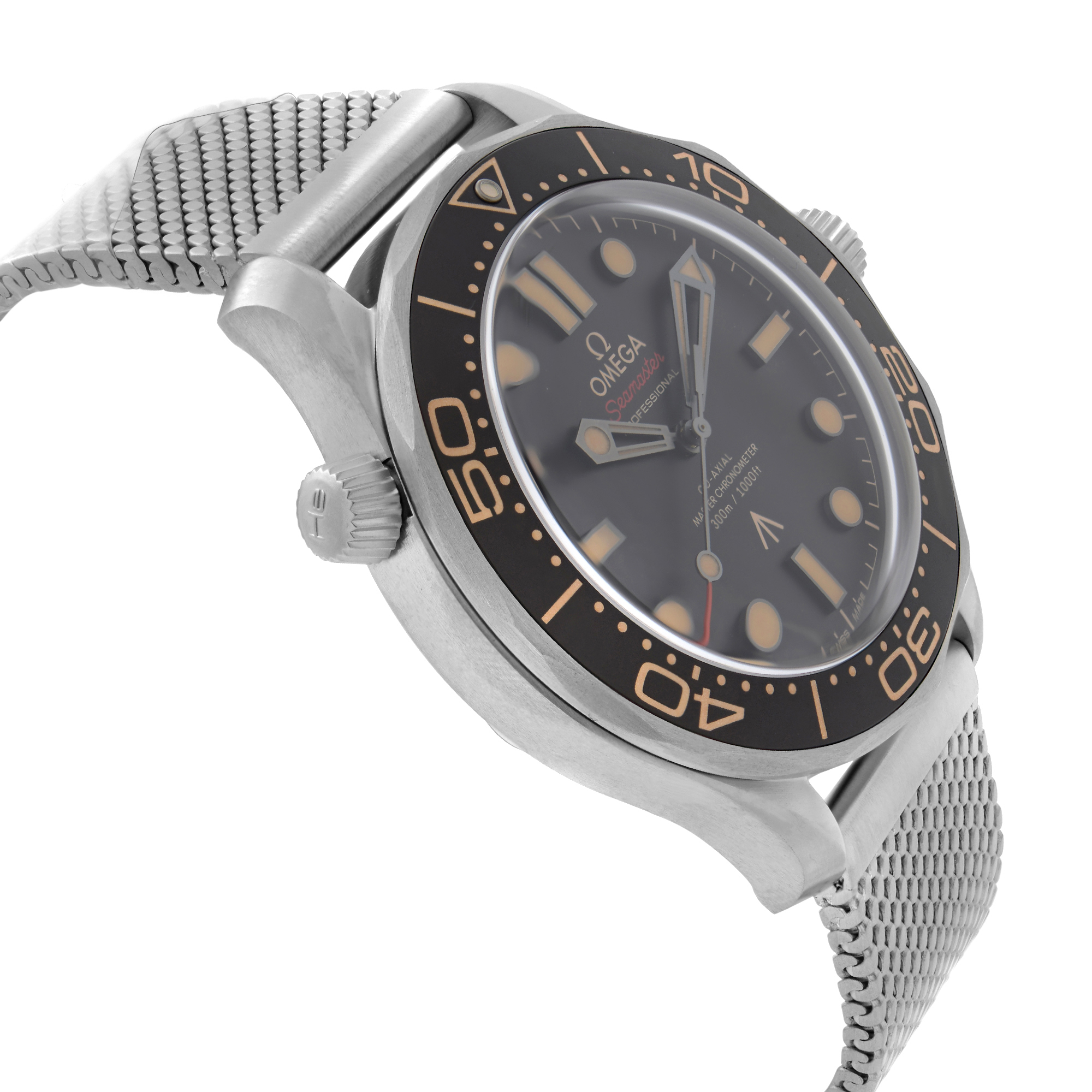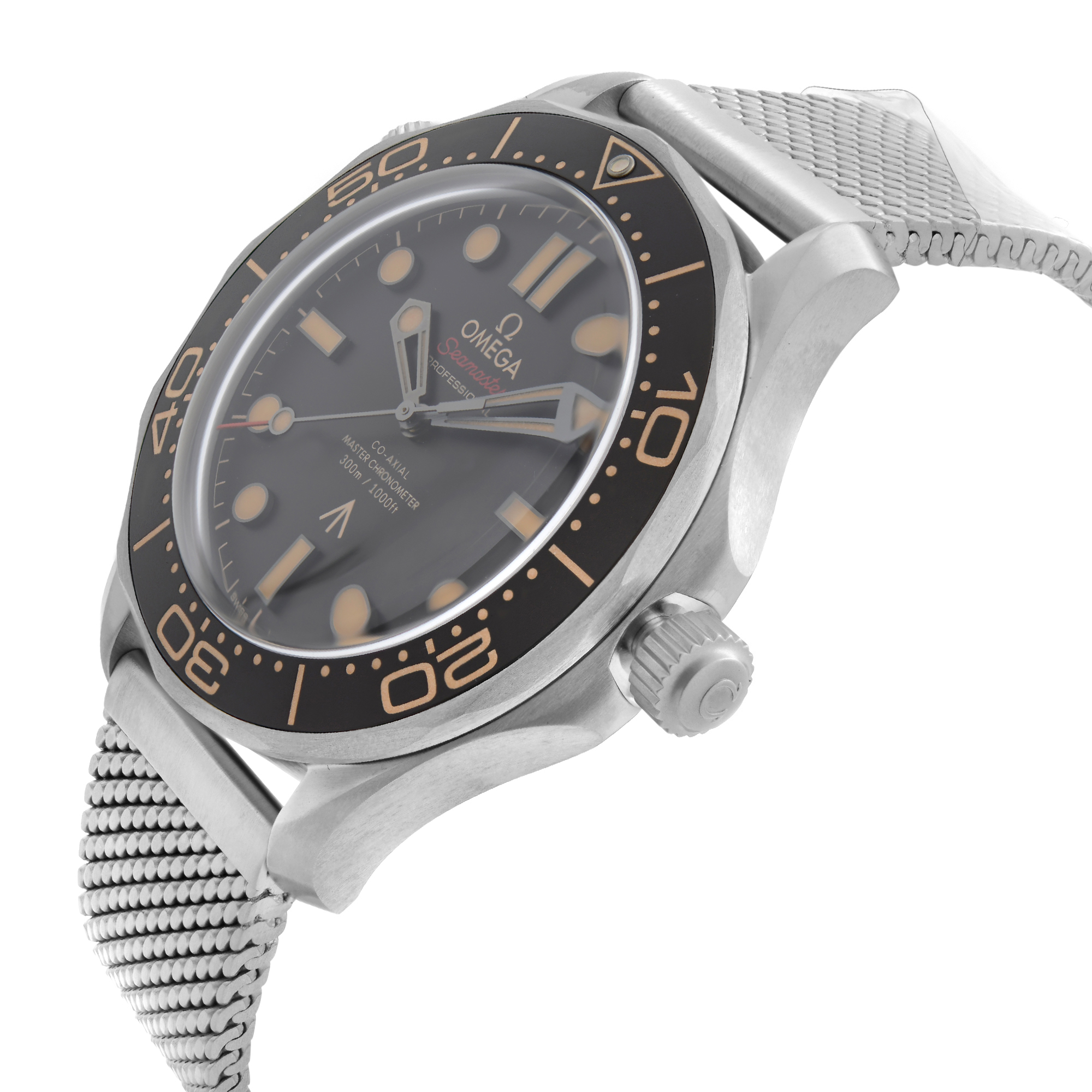 Never Worn Model Omega Seamaster Diver 300 Titanium "007 Edition" "No Time To Die" Brown Dial Men's Watch 210.90.42.20.01.001. The 007 Edition Diver is a Beautiful Timepiece That is Powered by Mechanical (Automatic) Movement And Features: Round Titanium Case with a Titanium Mesh Bracelet, Unidirectional Aluminum Bezel, Brown Dial with Luminous Skeleton Hands, Both Dot & Index Hour Markers. Original Box and Papers are Included. Covered by 3-year Warranty. Worldwide Shipment with a 30-day Hassle-Free Return Available.