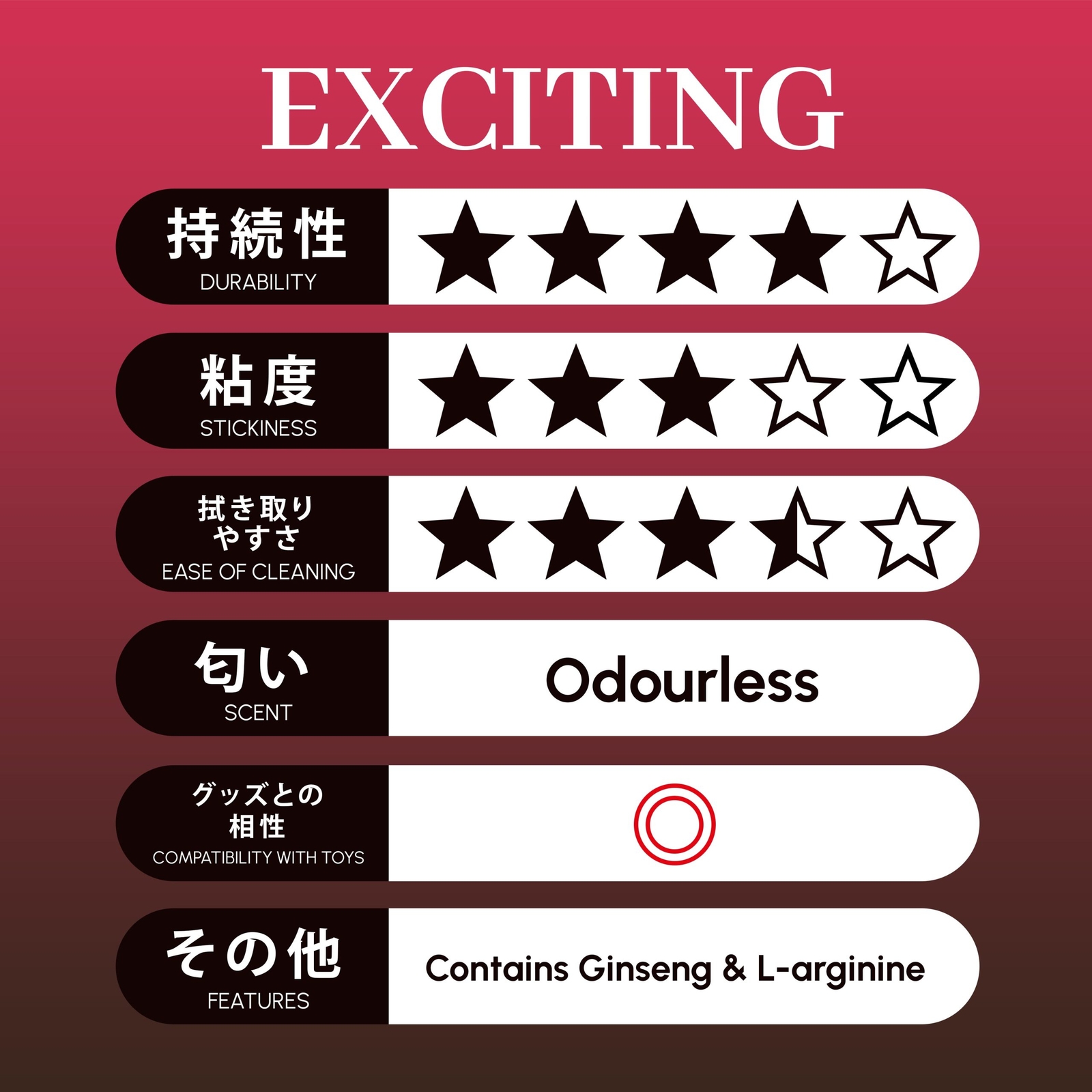 - Features ginseng, L-Arginine, Unscented