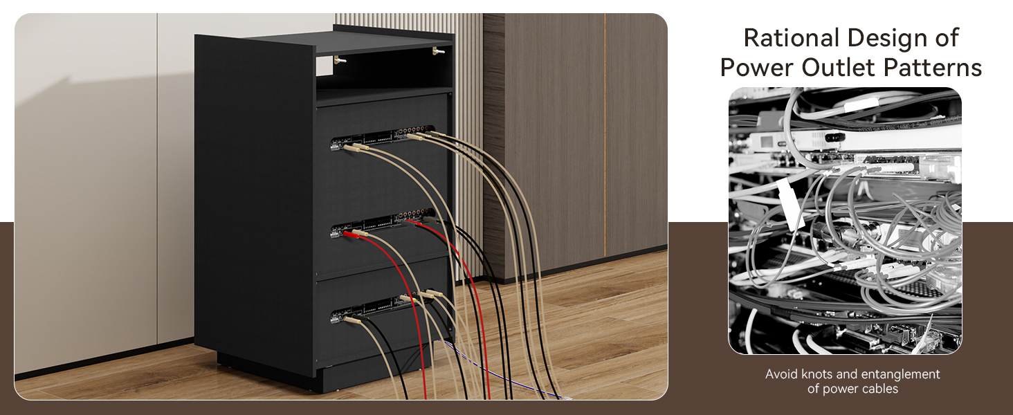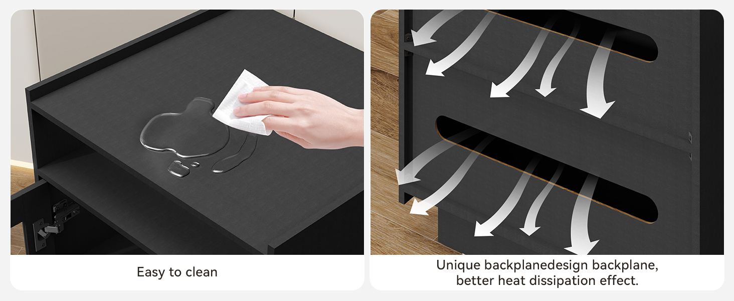 【Smart Cooling & Cable Management】Special ventilation slots improve air circulation to prevent electronics overheating. Built-in cable holes keep cords tidy and out of sight for a neat and safe entertainment area.