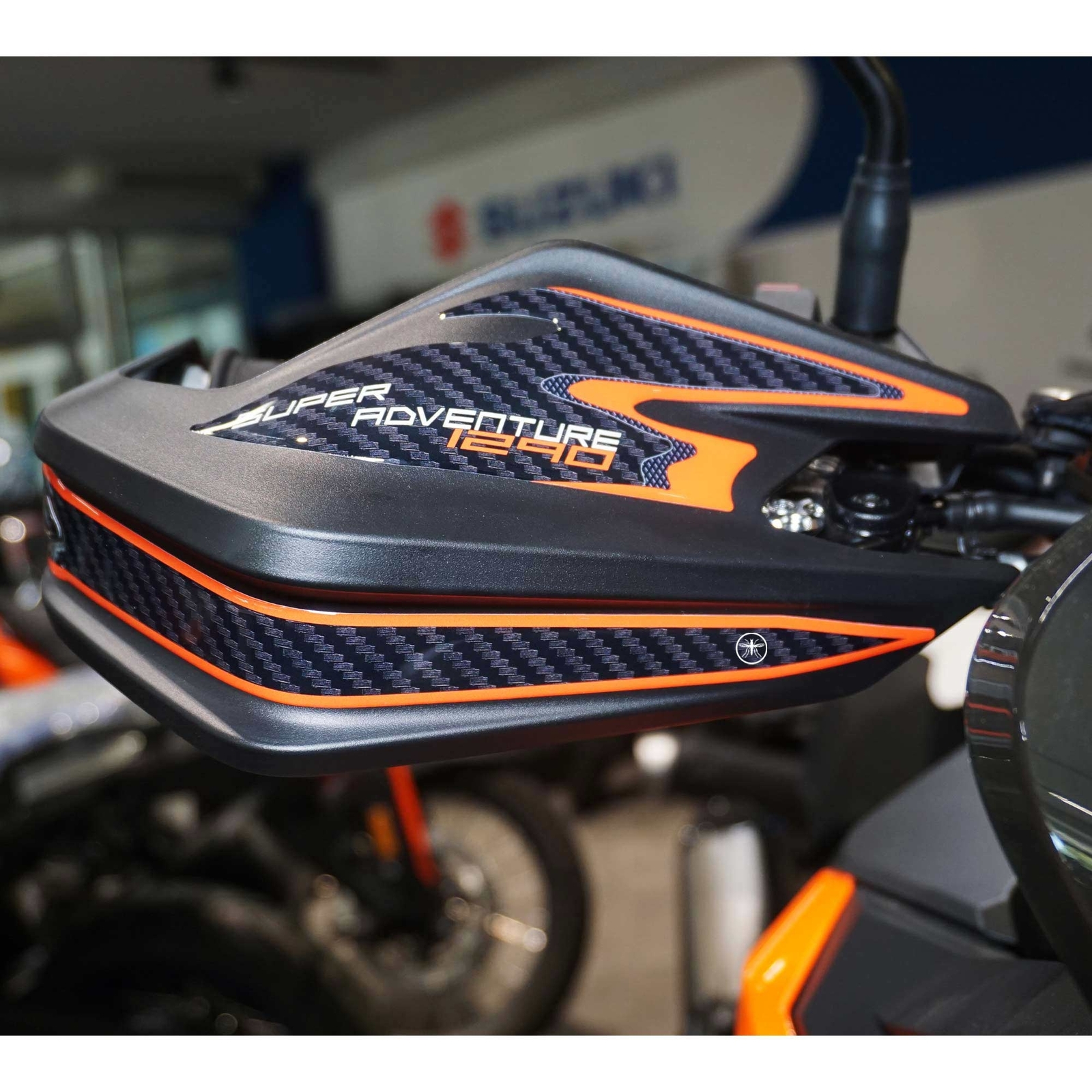 Adesivi Made in Italy, Esclusivi Labelbike, realizzati in resina con Carbon Look (simil carbonio) e Arancio con scritta 1290S. I nostri adesivi decorano e rendono unica la tua KTM Super Adventure 1290 S 2021 - 2024, riparano da Urti e Graffi e resistono alle Intemperie ed ai Raggi U.V.