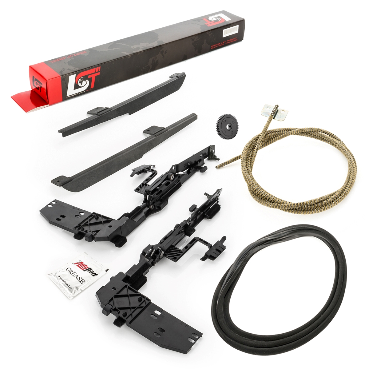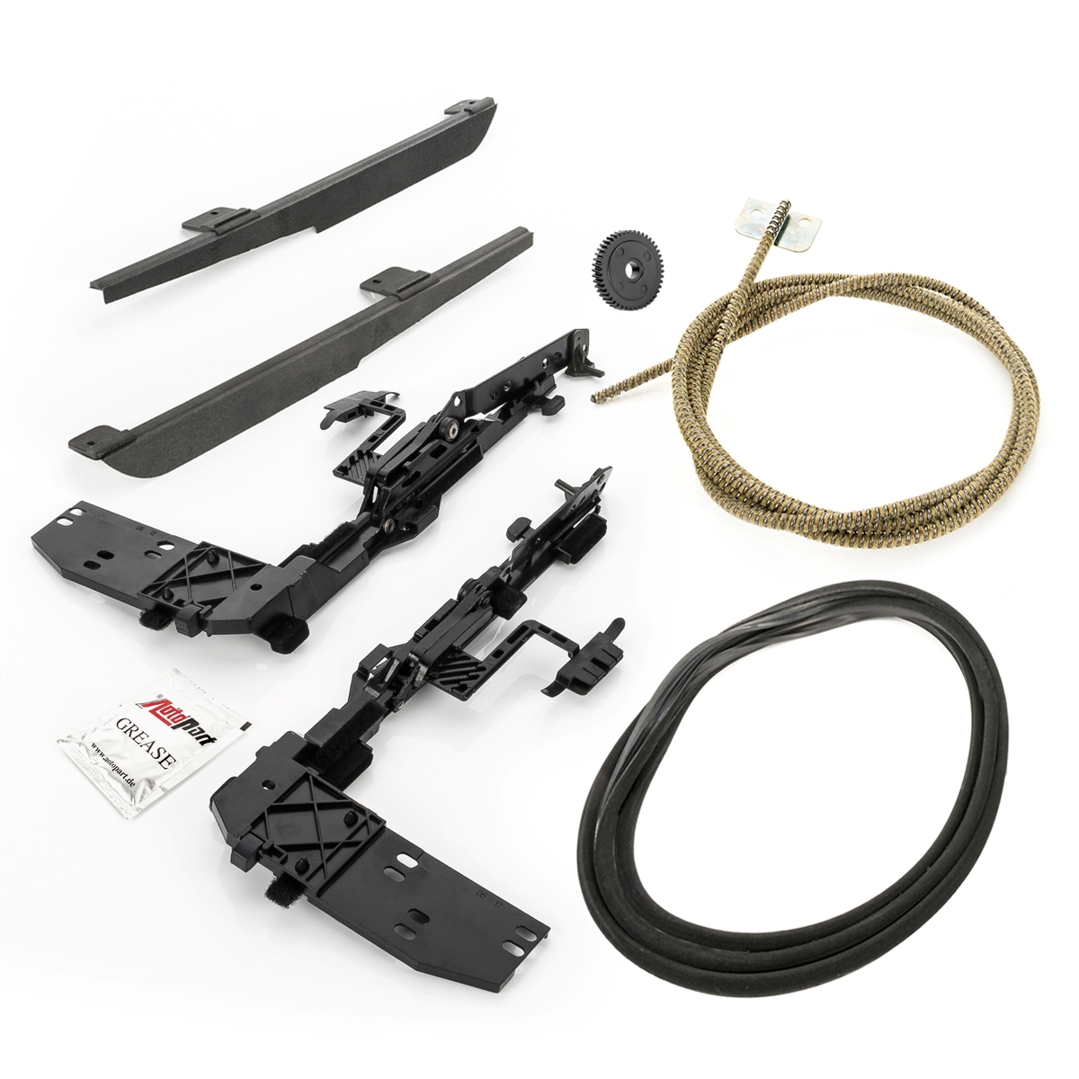 • 1x Satz (Hubwinkel links und rechts mit Gleitschienen + Windfang links und rechts + Seilzug + Dichtung + Zahnrad)