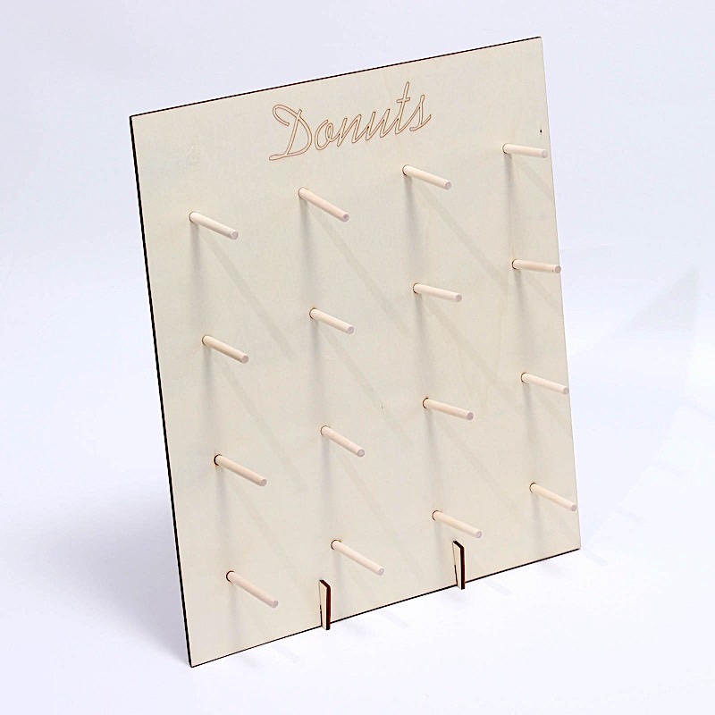 This wooden donut wall display stand will look great on your dessert tables! Featuring poles sticks and a rectangle board with a stylish engraved "Donuts" at the top, this easily assembled donut holder is a great addition to your party treats corner. Use this dessert stand to hold your donuts, bagels, pretzels or any delicious treats. This dessert holder is ideal for baby showers, kid's birthday parties, weddings, events or any special gathering. The perfect way to delight your guests and allow them to serve themselves in style.
