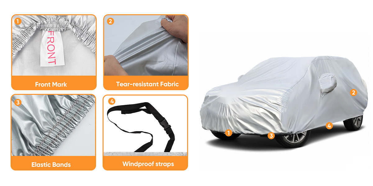 【Car Cover Waterproof All Weather】---No matter sun or snow weather, sun-proof, snow-proof, windproof, dust-proof, Scratch resistant multifunction and protect automotive from dirt, UV pollutants for the whole 4 seasons.