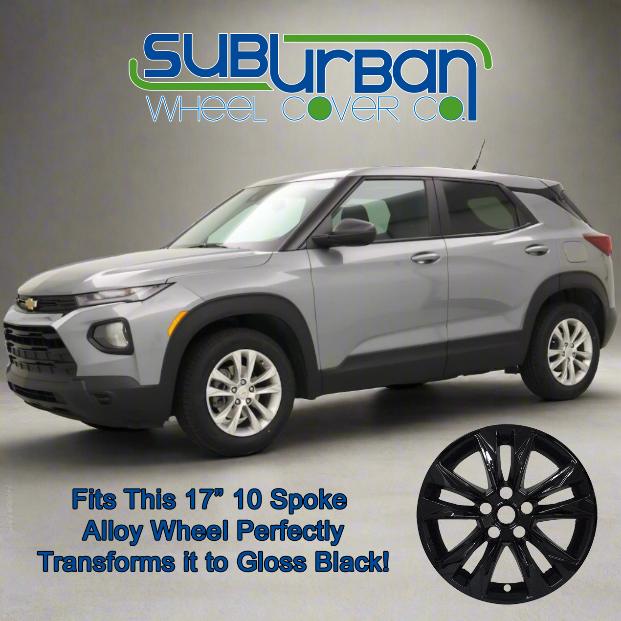 Here is a brand new set of gloss black wheel skins designed specifically for 2021-2023 Chevrolet Trailblazer LS models with the matching 10 spoke 17" aluminum wheels only (see vehicle photo). They DO NOT fit the 2024 model year. These wheel skins are manufactured out of durable ABS plastic. They look outstanding and are a great way to make your Trailblazer stand out. Once installed everyone with think you have black wheels. The price quoted is for a brand new set of 4.