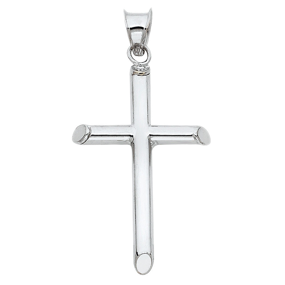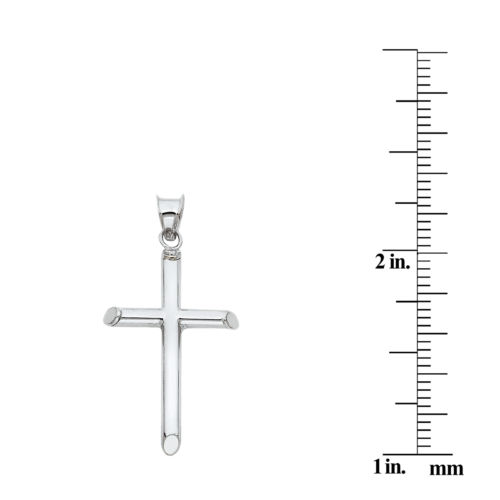 Precious Stars 14k White Solid Gold Traditional Cross Religious Pendant Necklace