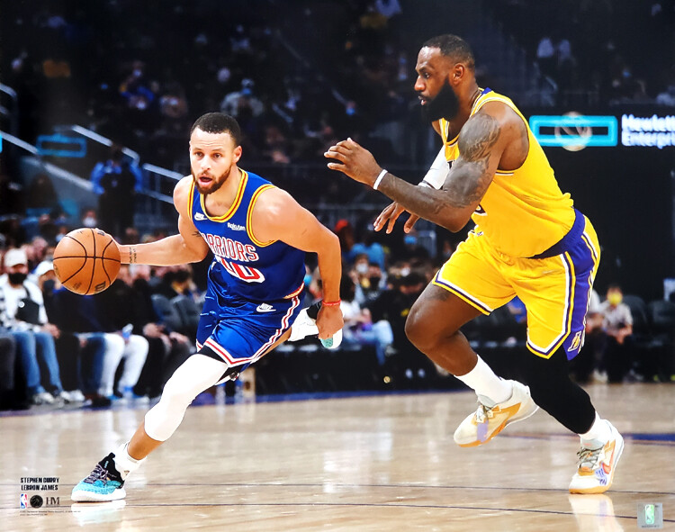 It's an NBA Battle of the Titans! Step on court with none other than the greatest shooter in the history of the game, Stephen Curry, and the greatest all-around talent, LeBron James, as they go head-to-head. With Steph using his point guard speed and agility, versus LeBron's towering presence and all-world defensive abilities, who would win this one-on-one battle? Leave it to your imagination...(but our money is on a successful Steph layup). No matter the outcome, what you get is two all-time legends in one great image! From the world's only source for licensed premium-quality 16" x 20" prints, this was printed with professional integrity on superior print stock, directly from the original photographic source, and is complete with an NBA Products serialized hologram for licensing authenticity. A rare, beautiful item for your wall and your collection!