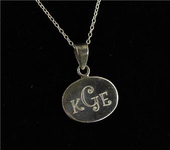 MODERN Fine Jewelry 18" Sterling Silver KGE Monogram Disc Pendant Necklace. The pendant measures 5/8" wide. Needs a good polish. Gently preowned. No smoke or pet odor.