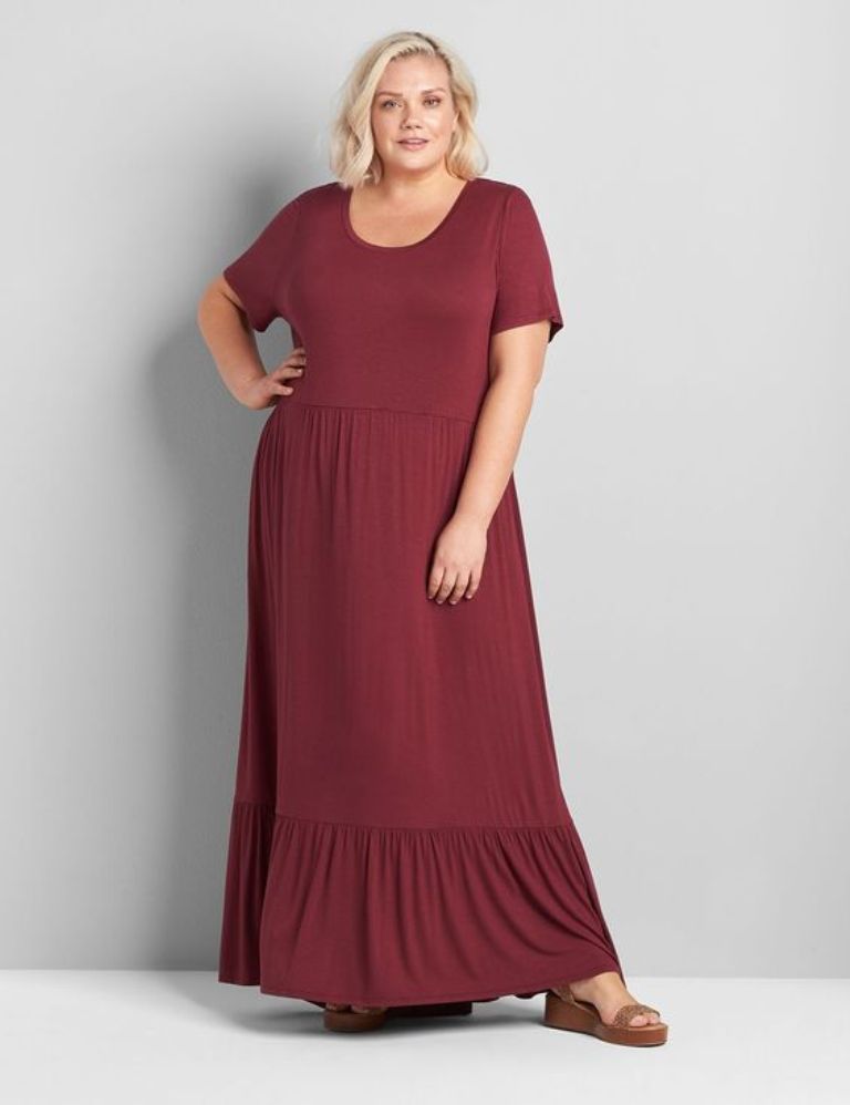 Details: You can never own too many knit maxi dresses. This style meets all your comfort and ease requirements, plus the seamed skirt gives it a tiered effect. Scoop neck. Short sleeves. Covered elastic at waist. Pockets. Slub knit. No closure; pull-over style. Front Length (On Body): approx. 56.5" (hits at ankle).