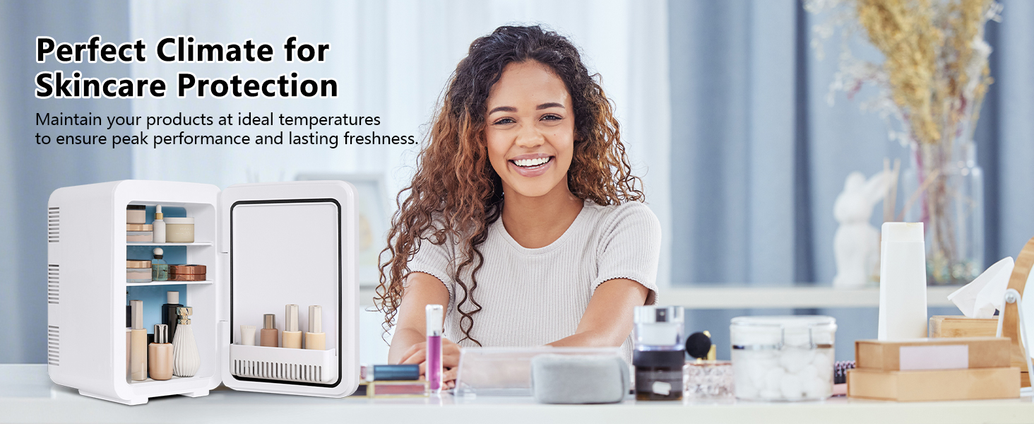 Our Mini Cooler Warmer will suit your needs. The 10L Skincare Fridge is designed to keep your makeup and skincare products fresh longer while giving your skin tone a cooling effect! And it can also be used to freeze food or heat milk and so on.