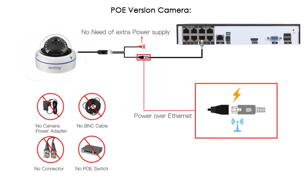 POE 48V CAMERA: the camera support Poe 48V switch and DC12V adapter !!package not with poe switch