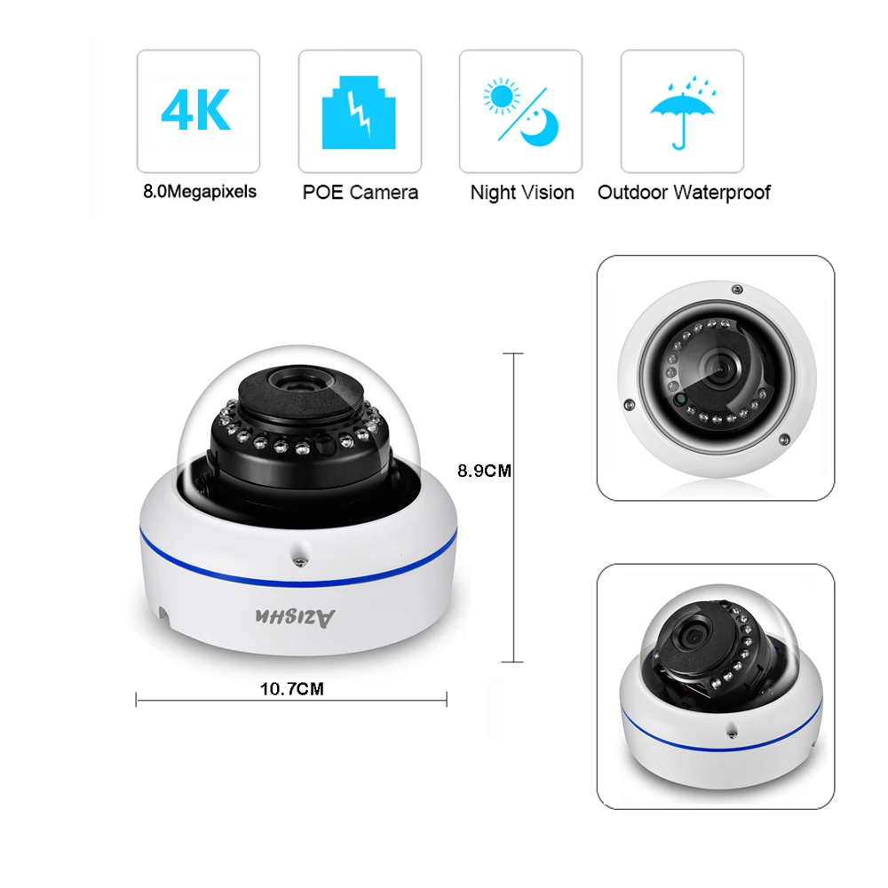 Features: 1, Support 2D/3D noise reduction, digital wide dynamic; 2, Support ONVLF protocol;can access third-party NVR; 3, Support for mobile phone monitoring (iOS, android) 4, Support Web, CMS, MYEYE platform management software, providing SDK; 5, Support for cloud services, network penetration, alarm information pushed to the phone; 6, Advanced H.265AI /H.265+ (compatible H.264/H.265) Stream, resolution, frame rate, bit rate adjustable 7, Support Day/Night, 15pcs array IR Leds,25m ir distance for night vision 8, Outdoor/Indoor Use 9, Lens: Default 2.8mm (3.6mm/6mm/8mm for optional,if you need , send message to confirm) 10.Audio:Build In Microphone. Support Audio Recording (Don't support Two way audio) 11.Face Detection:Support, must be used with Face Detection POE NVR Kindly Note: This model does not support pan/tilt/zoom (PTZ) Function |