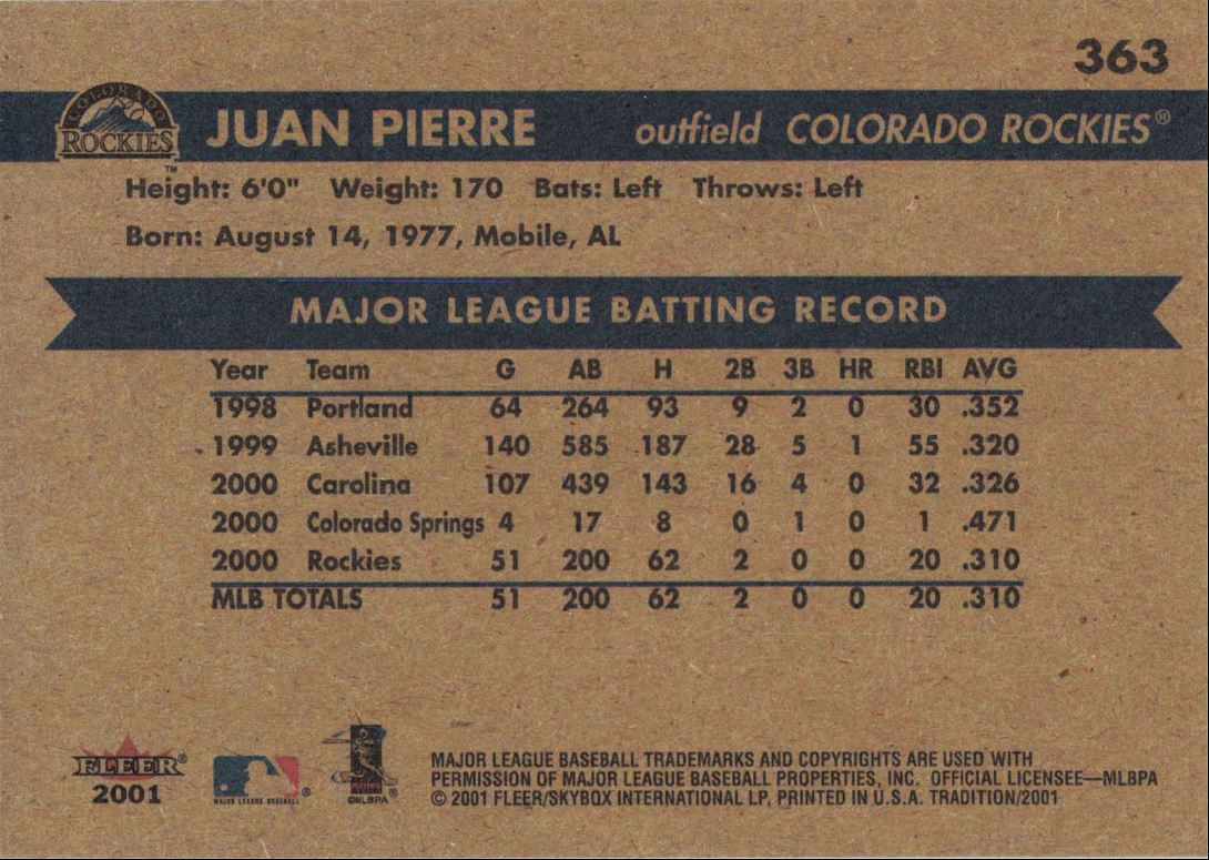 | 2001 Fleer Fleer Tradition Baseball 363 Juan Pierre | ||||||||||||||||||