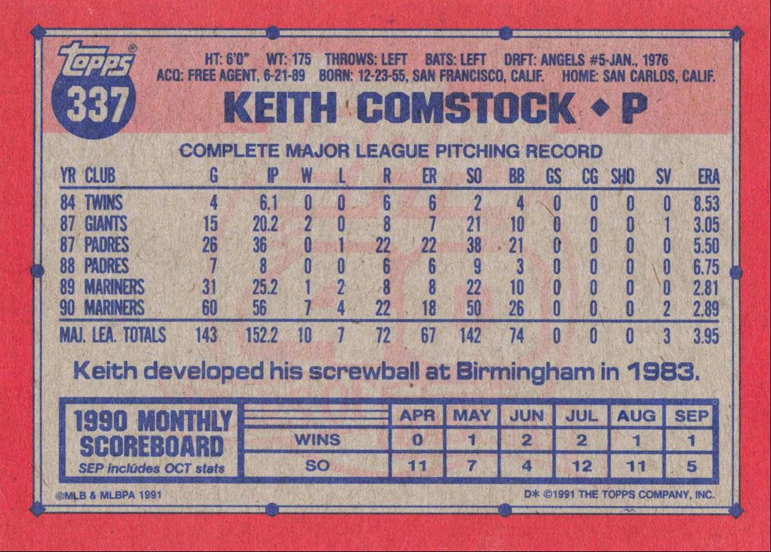 | 1991 Topps Topps Baseball 337 Keith Comstock | ||||||||||||||||||