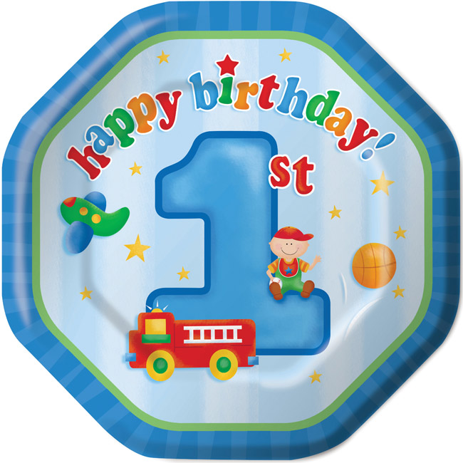 Fun at One Boy 10-1/4-inch Paper Plates 8 Per Pack 1st First Birthday Tableware