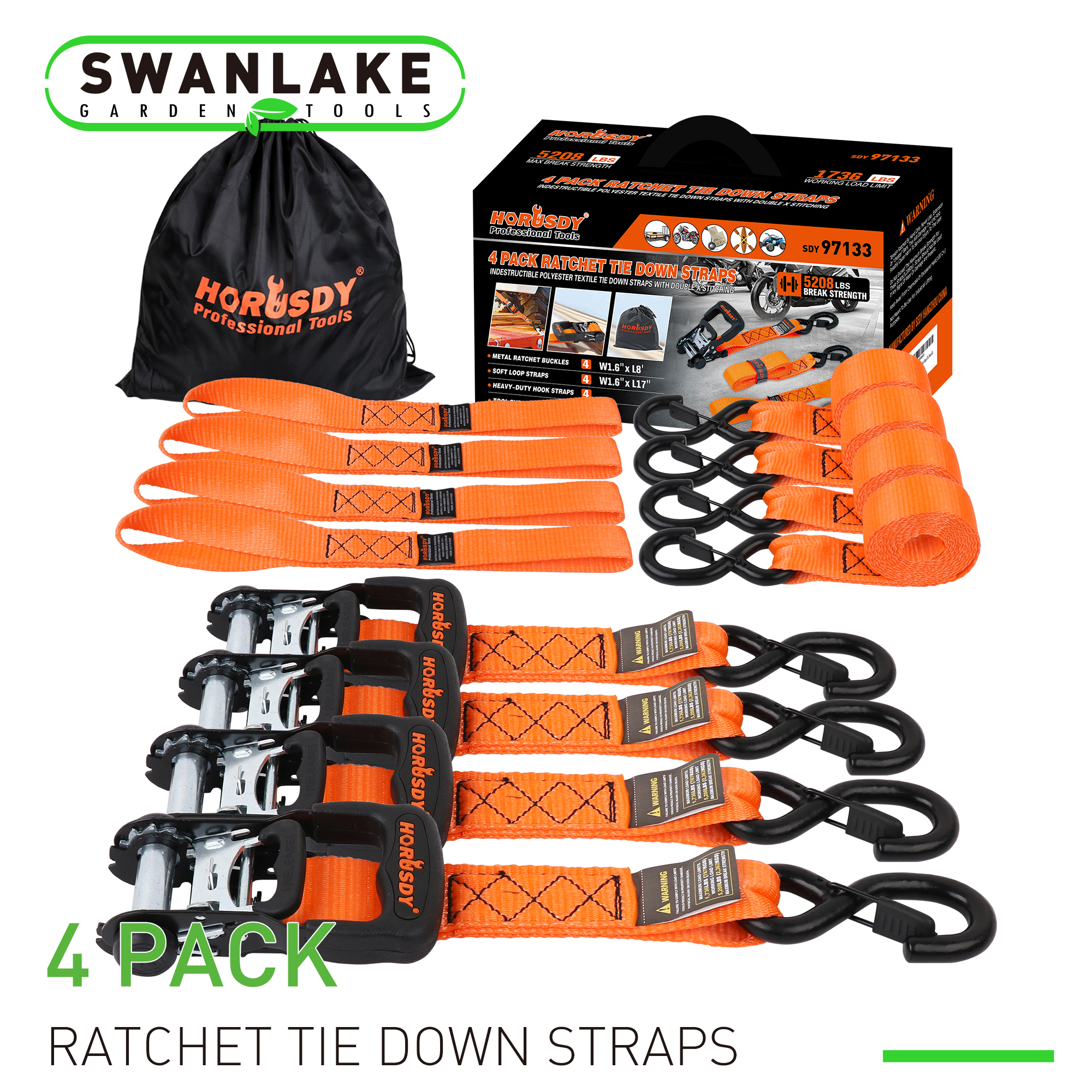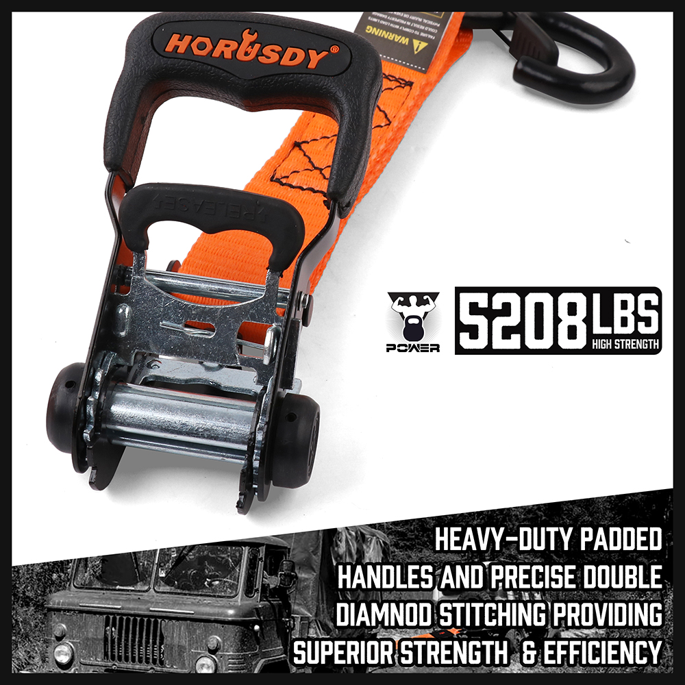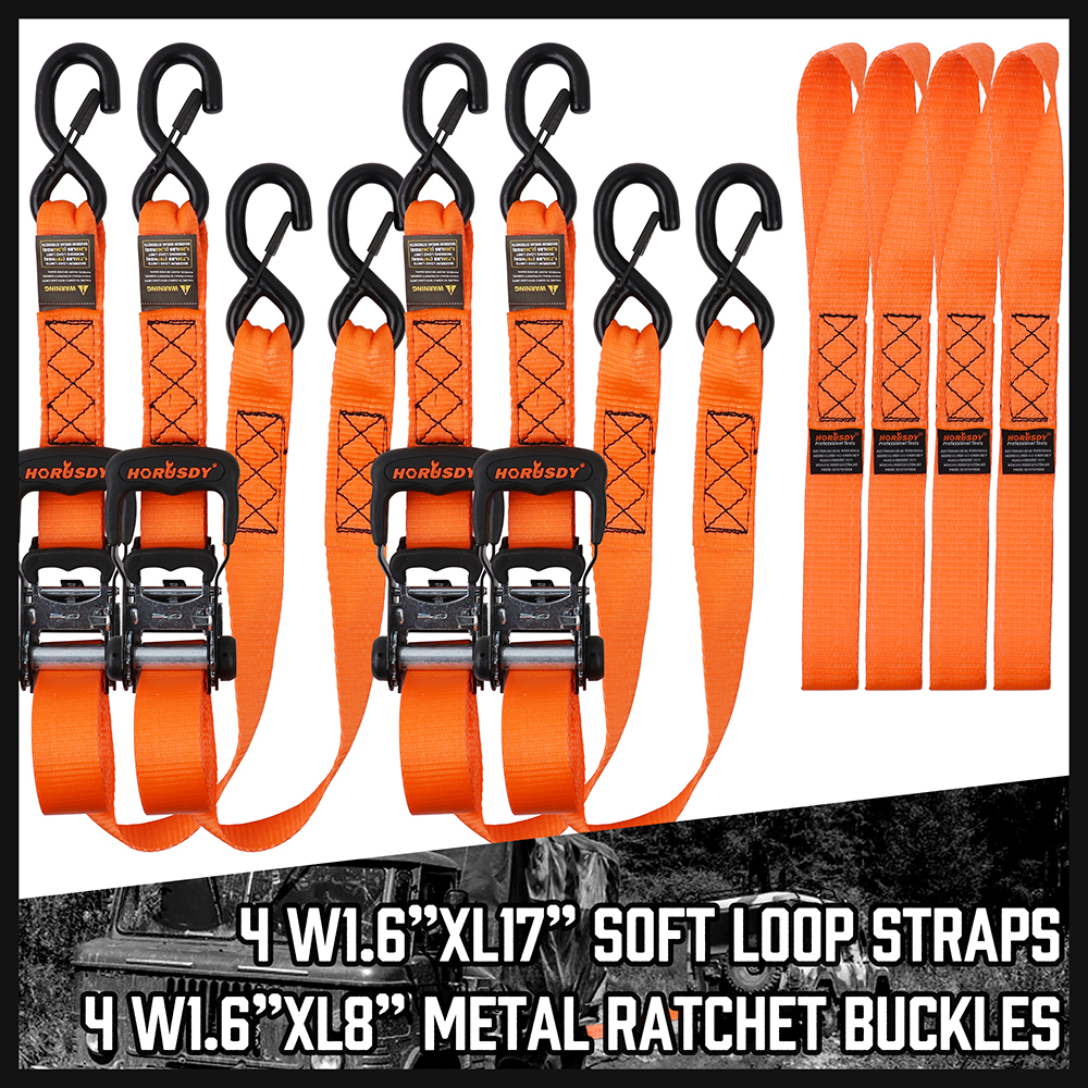 4PC Axle Car Trailer Hauler Ratchet Tie Down Straps Snap Hooks 5208LBS 1.7"X17"