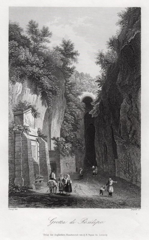 Nápoles (Napoli / Nápoles): Posilip: Vista de la gruta, 'Grotta di Posilipo'. Stahlstich v. French n. Deroy, alrededor de 1850, 16.5 x 11 (h) Número de artículo: 65130