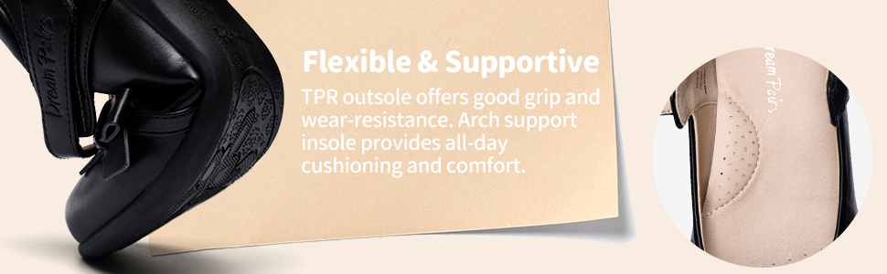 • Comfortable & Supportive: With latex insoles, these girls’ flats are breathable and cushioned forarch support for extra comfort.