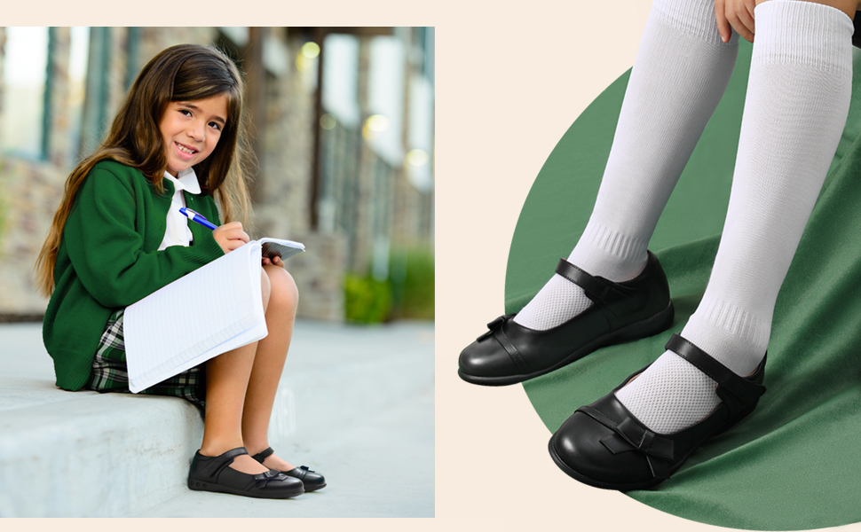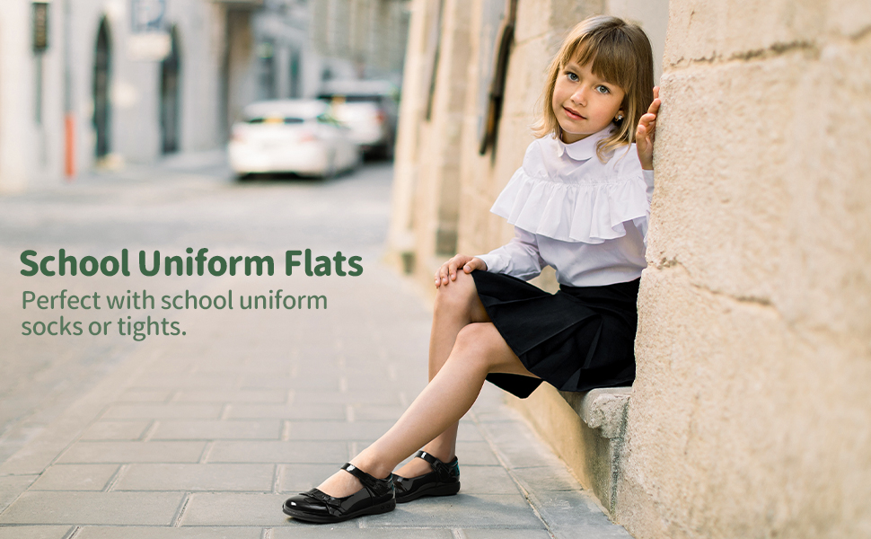 • School Uniform Shoes: These round-toe Mary Jane style black flats are perfect for wearing with uniforms.