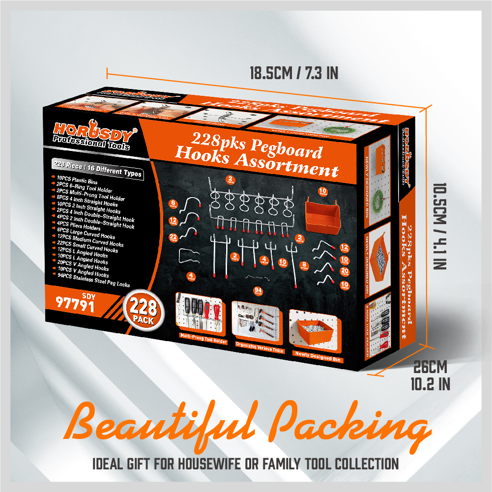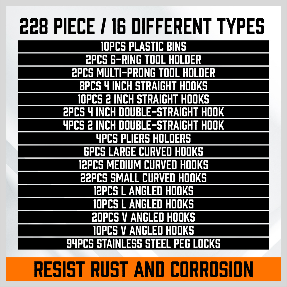 228 Piece Pegboard Hooks Assortment Accessories Bins Organizing Various Tools 5"