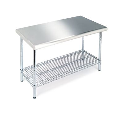 Make the most of your workspace with Seville Classics multifunctional and versatile Commercial NSF Stainless Steel Top Worktable. The table top features a thick, heavy-duty stainless-steel work surface. Table features a rounded bullnose edge for extra safety. Built with industrial-strength steel, the frame is engineered for strength and durability and is protected with a chrome coat. Designed for multifunctional use, the top measures 2 feet by 4 feet (24" x 49"); making it ideal for use in the home, garages, workshops, offices, laundry rooms, bedrooms and kitchens. A ventilated steel wire shelf below can be adjusted by 1-inch increments to your desired height and can store up to 500 lbs.; unit supports up to 1000 lbs. total.