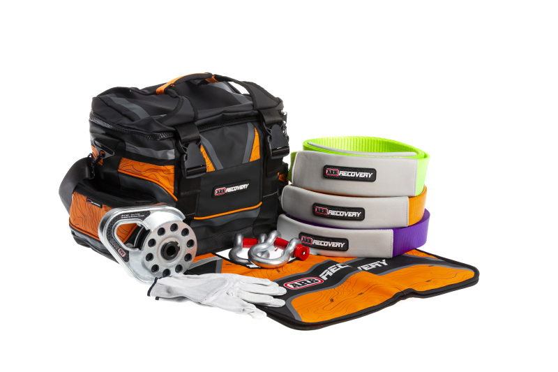 The updated ARB Premium Recovery kit sports a new heavy-duty PVC outer shell and modernized colors. The 600gsm PVC outer provides a rugged exterior that is perfect for recovery situations because it makes cleaning easier and helps keep the bag and its contents from getting damp. Additional updates include named compartments within the bag to keep vital vehicle recovery equipment in its place and on-hand should the need arise, a #10 SBS zippered top, and improved carry handles. The multiple, named compartments provide space for the included snatch strap, tree trunk protector, winch extension strap, shackles, gloves, snatch block, and recovery damper. Included in the kit is the highly regarded and awarded ARB 17,600 lbs vehicle snatch strap (ARB705LB). The ARB snatch strap which has been a winner of many recovery strap tests throughout Australia and the world, has a genuine 20% stretch to reduce shock to components on your vehicle and will assist in recovery situations. Also included in the ARB Premium recovery kit (RK9A) kit, is the highly regarded competition snatch block (10100020) which is used by elite drivers in some of the world's toughest challenges and courses, as well as military applications in most parts of the world. When selecting a vehicle recovery strap (snatch strap) it is recommended that the minimum breaking strength of the strap should be between two and three times the gross vehicle mass (GVM) of any vehicle it is used with, and that the strap must be suited to the GVM of the lighter of the two vehicles used in the recovery process. The 17,600 lbs recovery strap is therefore suitable for vehicles with a GVM between the range of 5800 to 8800 lbs, encompassing a majority of 4WD vehicles. This is only to be used as a general guide.