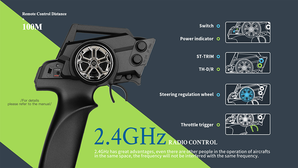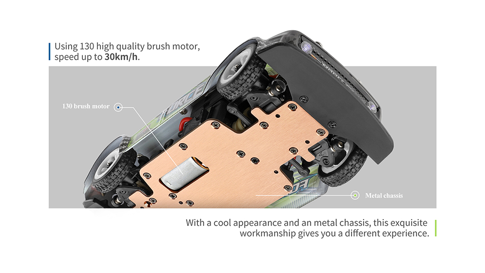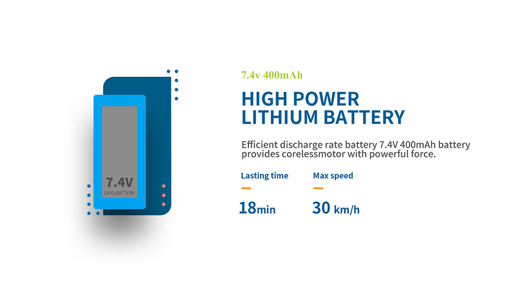 2. Adopt 7.4V 400mAh, 130 brush motor, speed up to 30KM/hour