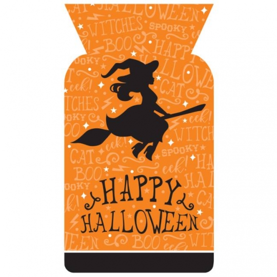 Happy Halloween Flying Witch Shaped Cello Bags 20 Per Pack 5" x 9" Plastic