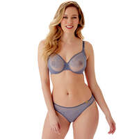 Sheer lace molded bra by Gossard Lingerie. Representing the very latest in lingerie innovation, Glossies Lace features beautiful Chantilly lace which is both extremely delicate and reassuringly supportive. Offering all the lift, support and projection of the classic Glossies but with added modesty, this discerning choice oozes Glossies into a new era.