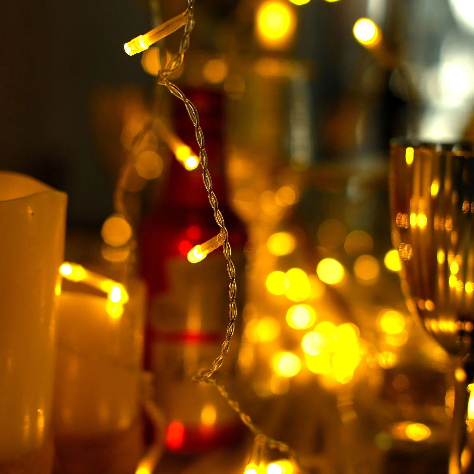 Accent your party backdrops and walls with the sparkle of this LED fairy lights garland! Featuring 8 drop down strings with LED lights, this garland will be perfect for your weddings, parties, events or home and office decor. Hang it anywhere you like to add a glowing touch of light or combine it with floral arrangements for a romantic glimmer wherever you'd like. Whether you are decorating for the holidays or just want some low-light ambiance for your home, you can always find a use for these versatile LED lights and transform your space into a completely different environment.