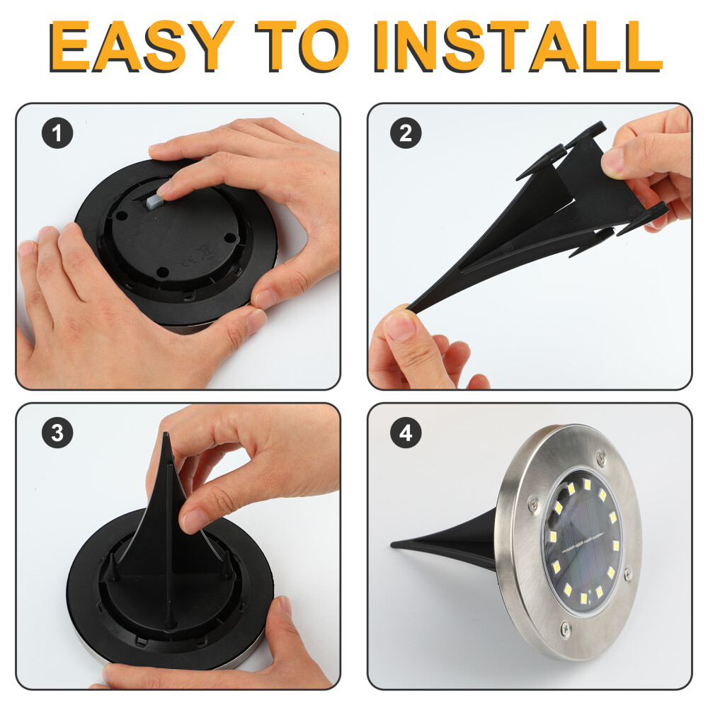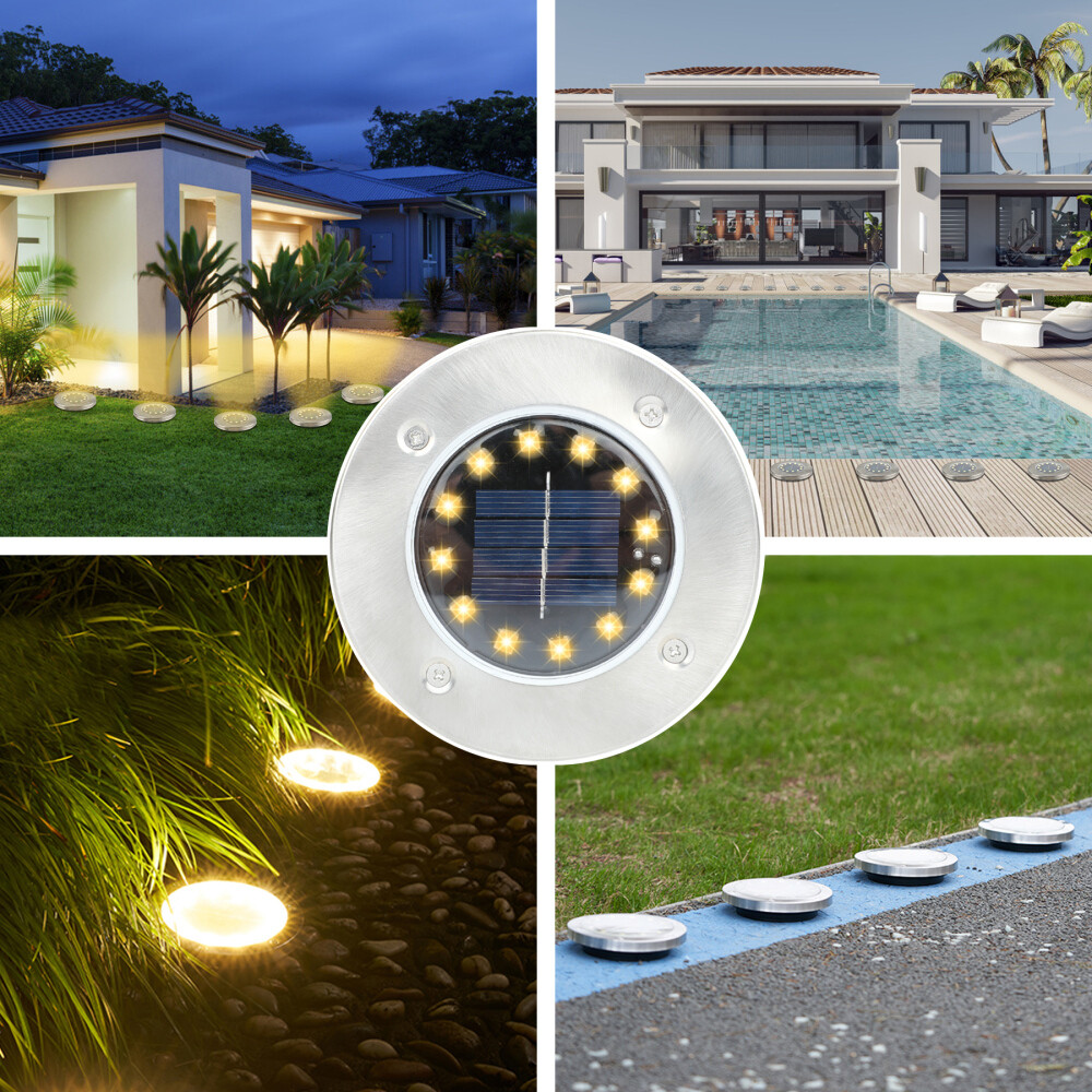 En comparación con las luces solares ordinarias, la farola 12LED tiene 12 LED, que pueden brillar más. Una vez que la batería está completamente cargada, se enciende durante un máximo de 8 horas. Ideal para porches, caminos, patios, piscinas, patios, jardines, entradas de vehículos, etc. Económico y respetuoso con el medio ambiente.