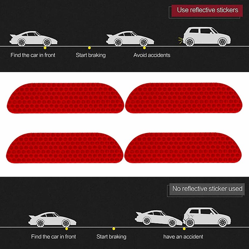 Feature: Brand new and high quality Material: PET Color: Red, Blue, Silver(Pleaseleave me a NOTE about the color you want,otherwise we'll send them randomly.) Size: As the picture Package Included: 1 x 4pcs Reflective Car Sticker Notice: 1. Please allow 1-3mm error due to manual measurement. 2. Please make sure you do not mind before you bid. 3. The colors may have different as the difference display. Pleased understand, Thank!