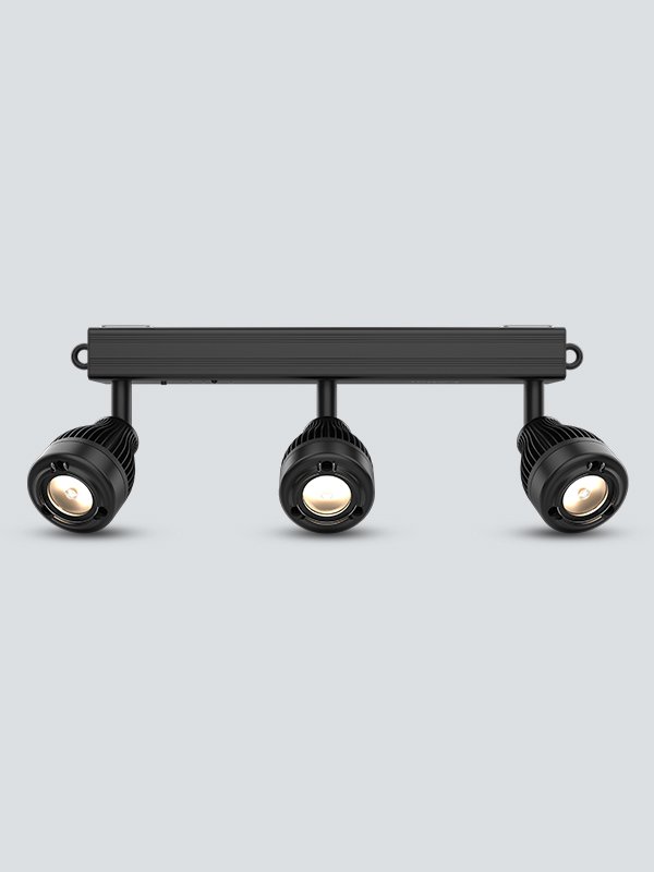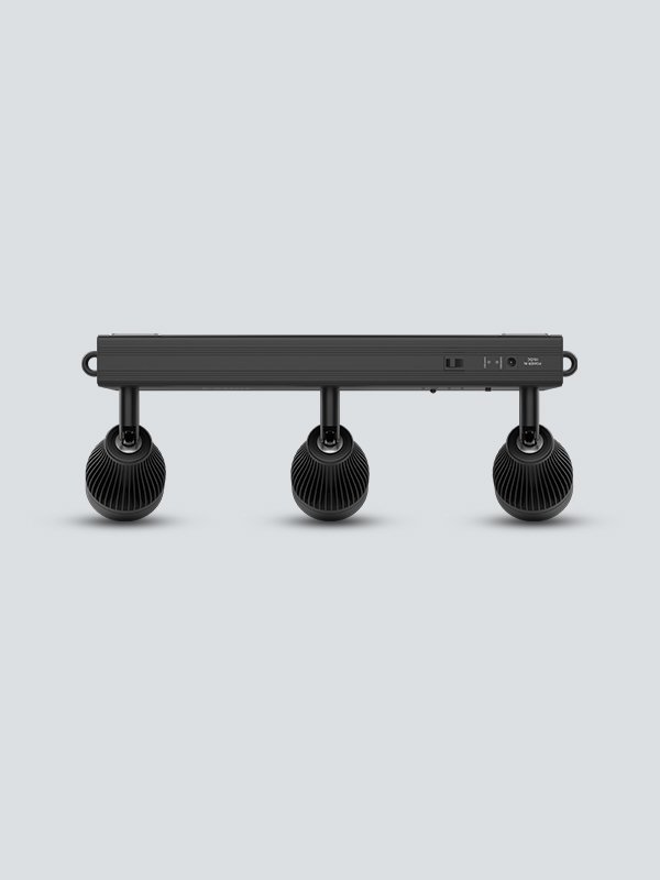EZBar is a battery-powered bar with three independent warm white pin spots designed to accent event space elements. Each of the three lights can be manually adjusted to different angles to light a variety of subjects. The rechargeable lithium battery allows the fixture to be placed anywhere and provides up to ten hours of run time. The bar features a strong magnet for flexible mounting options to most metal surfaces. An included wireless IRC-6 remote can set the dimmer and turn the fixture on or off. EZBar also includes wide-angle diffusers for short-throw applications.
