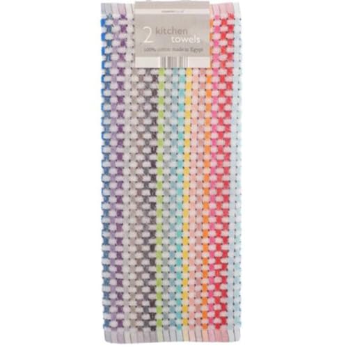 This 2 Pack 100% Egyptian cotton tea towels set has zing design on it. These are very soft, super absorbent tea towels which are great for drying your dishes and general cleaning purposes. Strong and hard wearing. Material is 100% Egyptian cotton, it is machine washable.