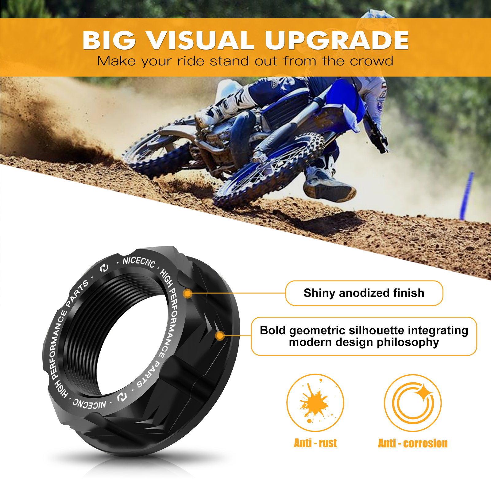 -- Machined by the latest-generation CNC technology to ensure secure installation. You don't run a risk of having a loose nut during riding.