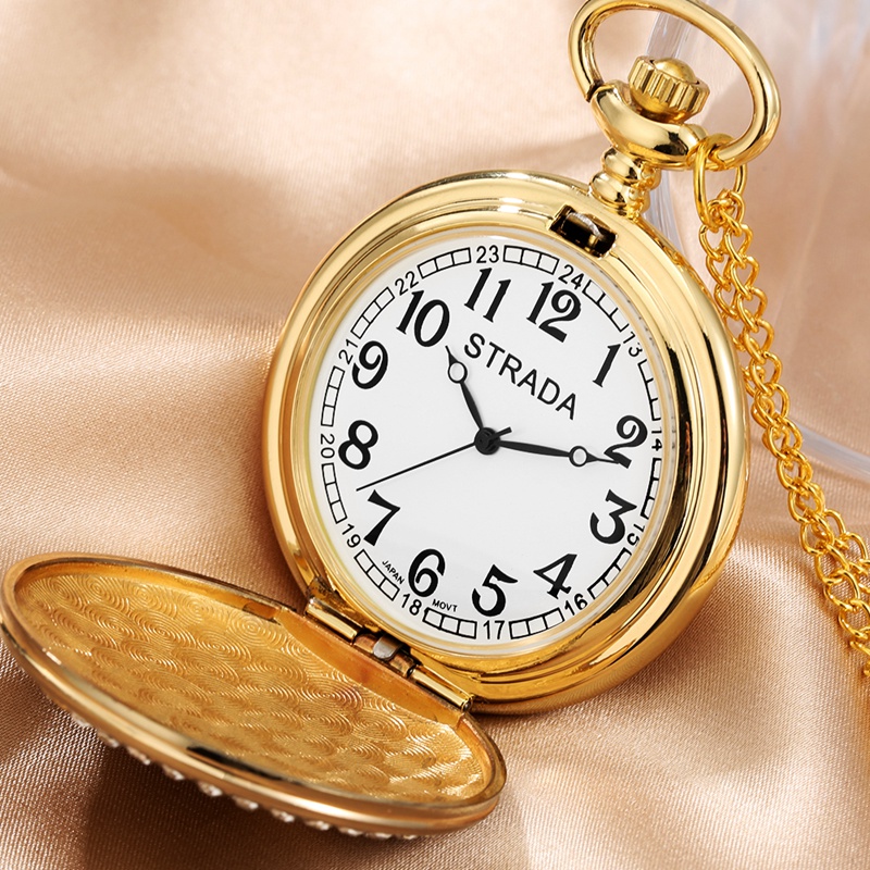 Luxury Rhinestones Bee Decorated Arabic Numerals Dial Quartz Pocket Watch Gifts