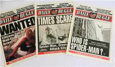 Unobtanium Ltd. company was the ONLY company that had PERMISSION and RIGHTS to MANUFACTURE and sell these FULLY licensed items by Studio Columbia Pictures and Marvel. ANY Reprints of any kind ie..posters, mini's, or full-size, ARE NOT "OFFICIALLY LICENSED MERCHANDISE". Unobtanium Ltd. did not give permission, authorize, nor sold its licensing to ANY company to reprint, copy, resize, or alter in any way the above "Daily Bugles". Any Company selling the above "Daily Bugles" in any other form than shown exactly above, IS NOT an Unobtanium Authentic, Authorized, nor Licensed Product.