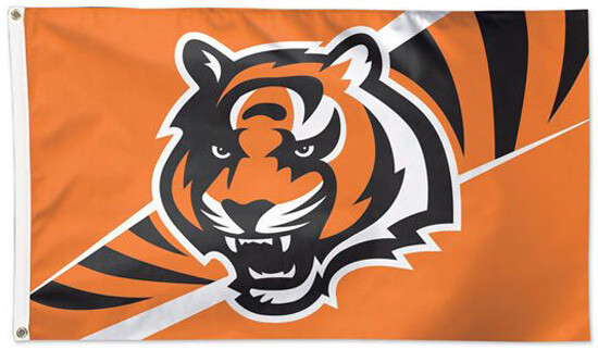 The biggest, boldest way to show your Bengals pride! Own the official Tiger-Stripe team flag of Cincinnati's legendary NFL Football squad with this entry in Wincraft's deluxe three-foot-by-five-foot flag collection. With officially-licensed roaring-tiger graphics printed with top-quality color-fast dies on premium domestic polyester, this long-lasting flag comes with super-strong metal grommets for everlasting pole attachment, or you can simply hang it on the wall. You can also fold it up and take with you to the game, and who knows, maybe it will get you on TV! The perfect accent to your home, office, or sports facility, and a must for any serious Bengals fan!