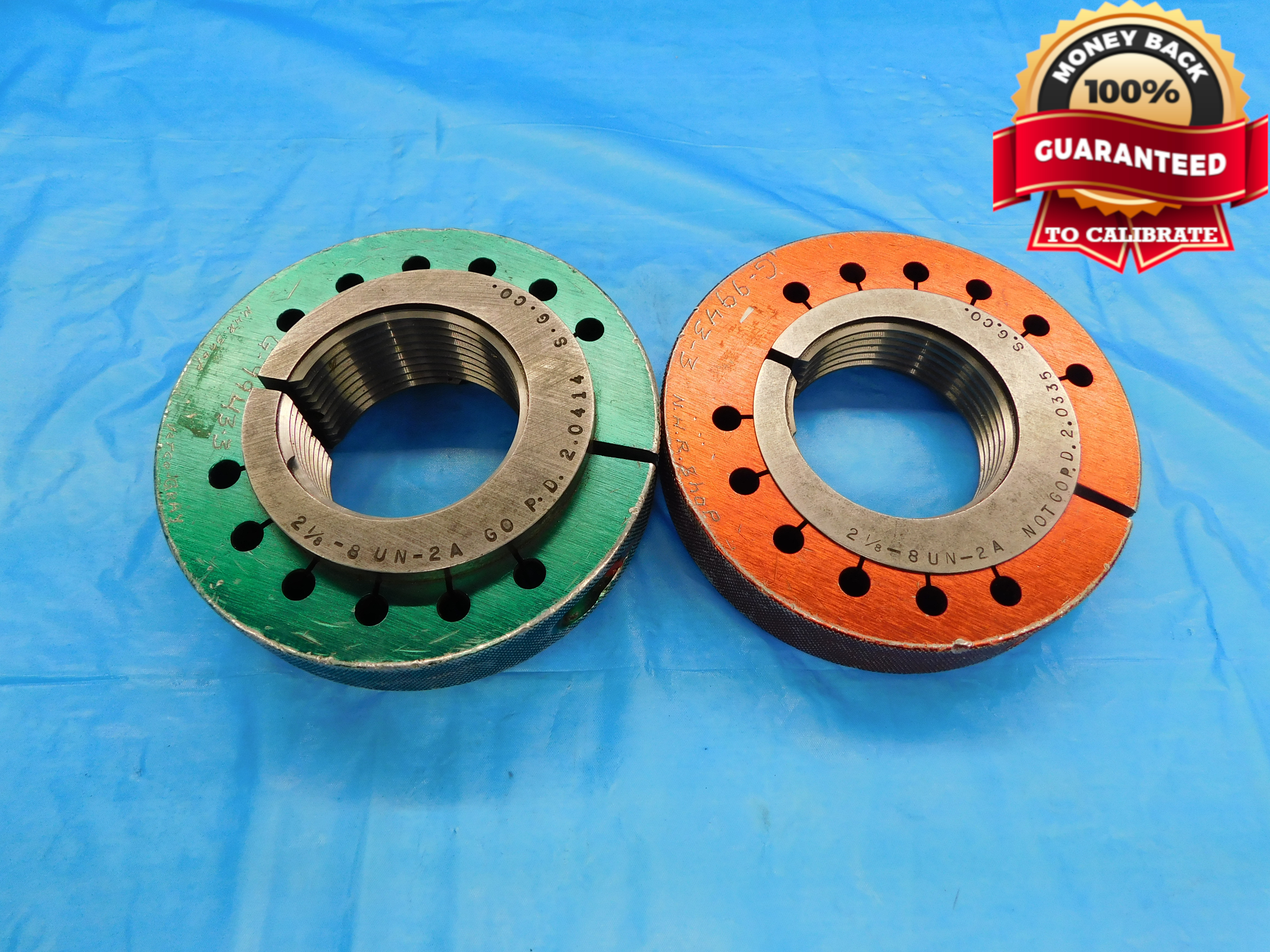 2 1/8 8 UN 2A THREAD RING GAGES 2.125 2.1250 GO NO GO P.D.'S = 2.0414 & 2.0335