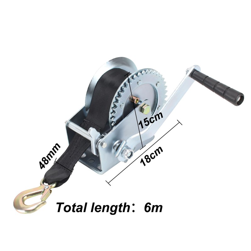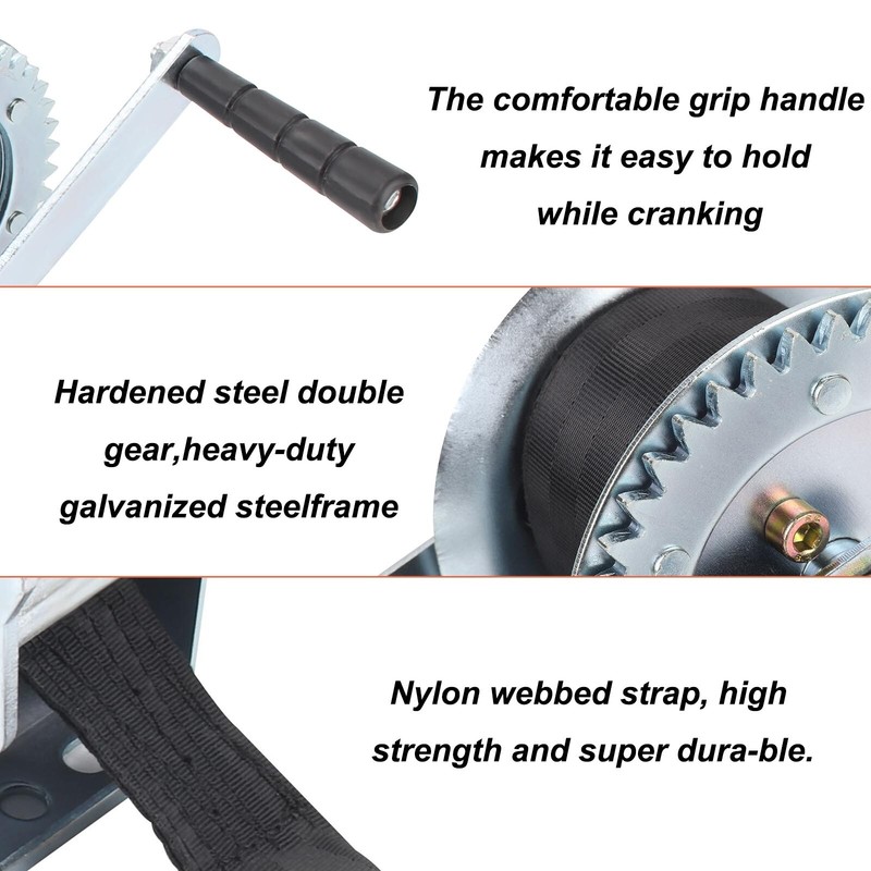 Smooth action ratcheting handle for easy pulling power with sure grip handle and locking mechanism.
