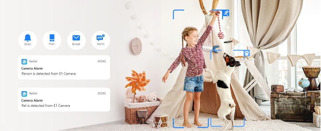 The wifi camera can detect people and pets and send you real-time motion-triggered notifications. Stay informed of events that matter to you most.