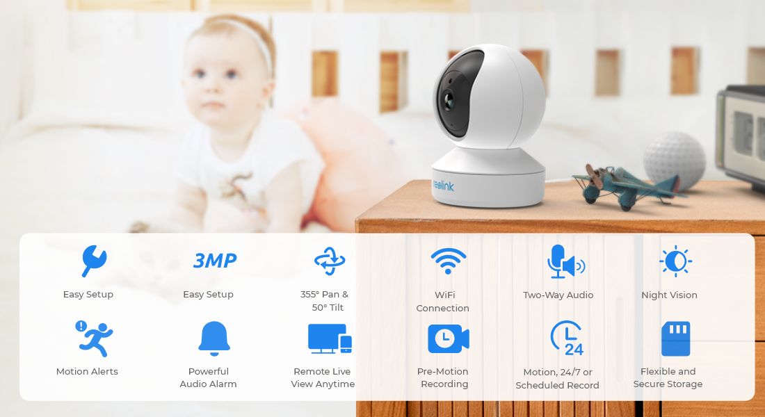 Refurbished Reolink Wireless Security Camera, E1 3MP HD Plug-in Indoor WiFi Camera for Home Security/Baby Monitor/ Pets, Smart Person/Per Detection, Two Way Audio, Micro SD Card Storage, Pan Tilt, Night Vision, Works with Alexa/Google Assistant