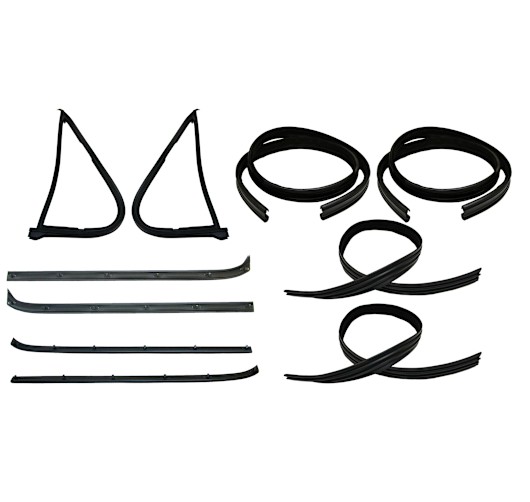 Weatherstripping kits contain several parts needed to keep wind, rain, water, snow and dirt outside a particular area to protect the vehicle from corrosion and eliminate drafts. Window channel kits, belt weatherstripping kits, door seal kits, liftgate/tailgate kits and vent window kits come with all the parts and accessories needed to seal a vehicle economically and efficiently.