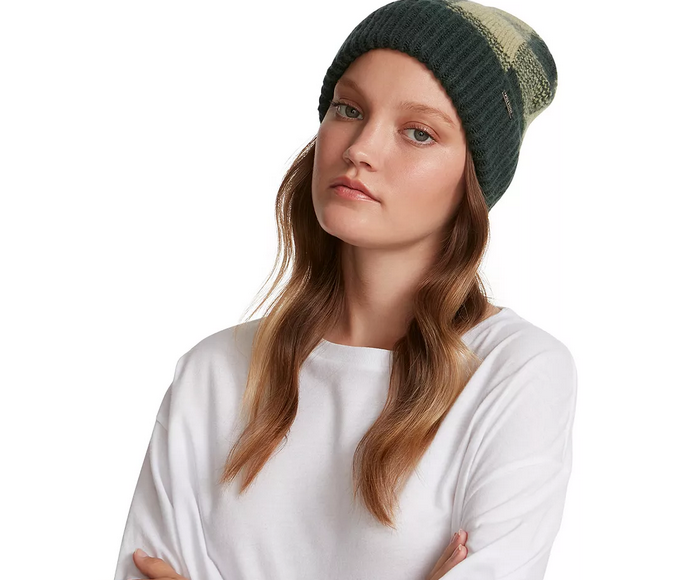 STEVE MADDEN Womens Beanie Hat Brushed Gingham Teal / Mint $28 - NWT