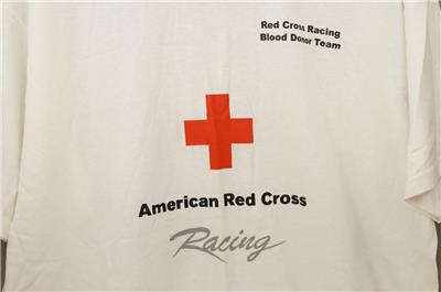 Vintage Anvil Red Cross Racing Blood Donor Team XL Double Stitch TSHIRT Like New. Appears never worn. No dry rot. Original owner home. Late 1980's - early 1990's era. 100% cotton. Made in Honduras.