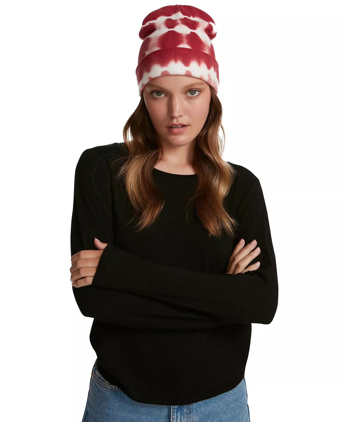 Bundle up and stay on trend in this super-stylish tie-dyed beanie from Steve Madden.