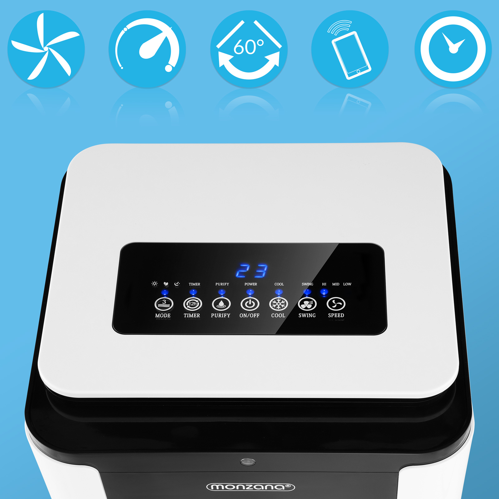Fonctions : Ventilateur + Rafraîchisseur d'air + Humidificateur + Purificateur d'air avec ioniseur