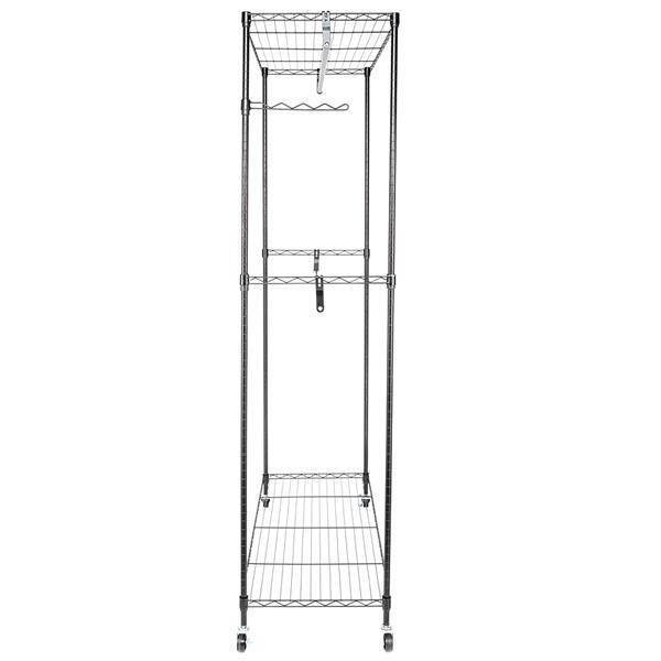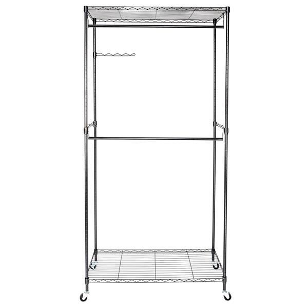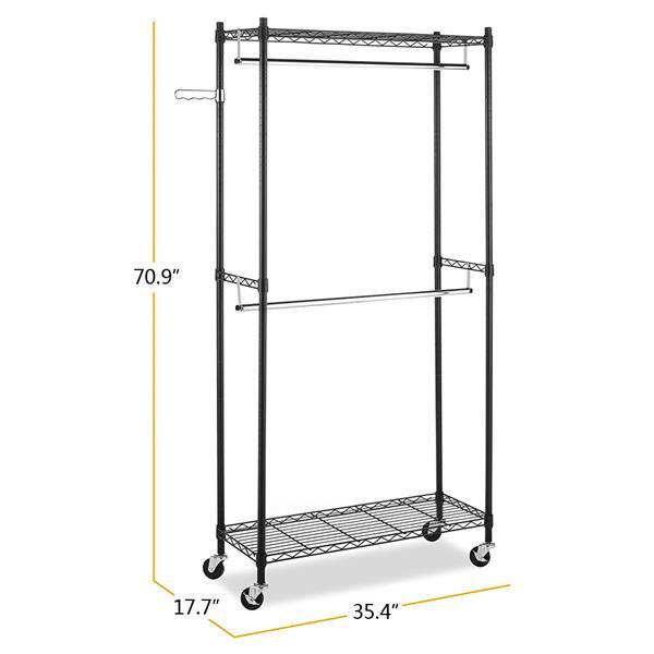 If you are always bothered by your messy room, this Garment Rack Clothes Hanger is highly recommended to you. Adopting high quality material, it features stable, sturdy and durable. It can create extra storage space instantly, and instantly organize your messy items into neat condition with little effort. With smooth rolling and stable stand, it's easy to move around your house and secure lock in space with 4 industrial wheels(Two locking). Moreover, it has a swinging arm and adjustable shelves, which allows you to organize belts, ties, shoes, purses and other stuffs. Don't hesitate, just take it home!