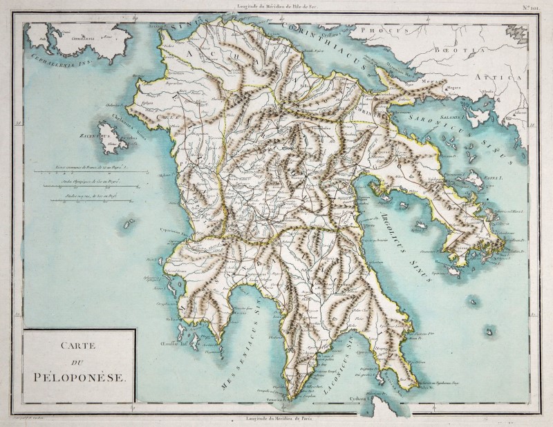 GRÈCE ( Grèce ): PELOPONNESE: Carte côtière, v. PF Tardieu, 'Carte du Péloponèse', avec coloration ancienne, vers 1800, 32 x 42 Zacharakis, non. 594 (sous Chanlaire). Numéro d'article : 97474