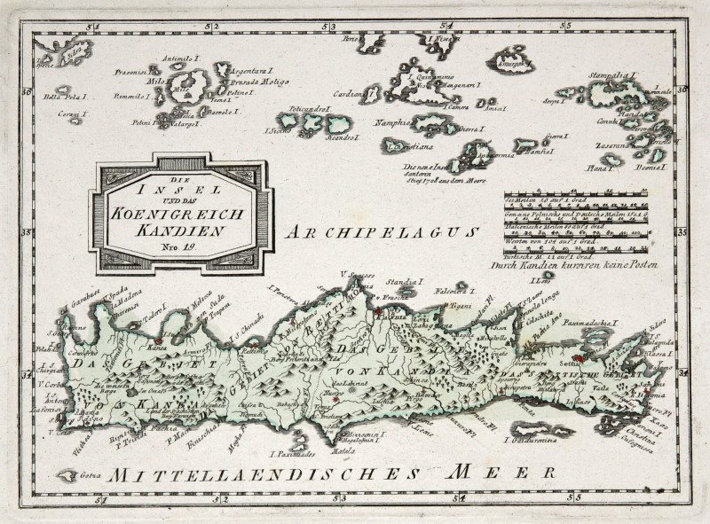Grèce (Grèce): Crète (Kriti / Crète / Candia): KST.- Map, b. , «l'île et le royaume de Kandia», Altkol., 1789, 21,7 x 30,7 Zacharakis, non. 1886 et Fig. Plaque 429. Avec une petite cartouche. Montre la Crète. Numéro d'article: 34634